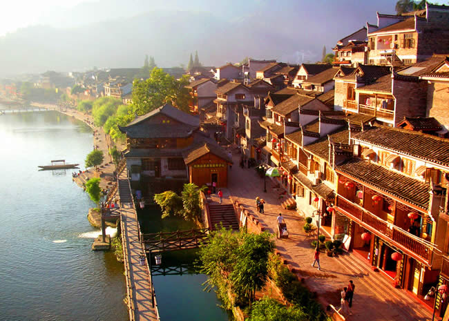 湖南鳳凰古城位于湖南省湘西自治州西南邊,是中國第101座國家歷史文化名城,是一個(gè)以苗族、土家族為主的少數(shù)民族聚集縣。它位于沱江之畔,群山環(huán)抱,曾被新西蘭著名作家路易艾黎稱贊為中國最美麗的小城。古城風(fēng)景秀麗、歷史悠久、名勝古跡甚多。城內(nèi)石板小街,古代城樓,明清古院;城外沱江蜿蜒,河水清冽,漿聲舟影,山歌互答,一派寧靜安祥的小城風(fēng)光。