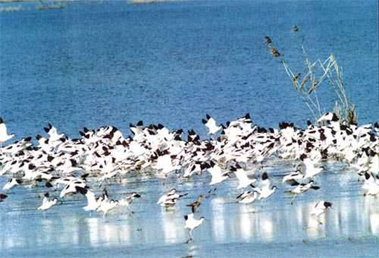 | 東洞庭湖是一個大湖泊型寬闊河道,它承納長江中上游和湖南的湘、資、沅、澧4條江河水量。湖泊的周圍是廣闊的沼澤和平原。 東洞庭湖是洞庭湖湖系中最大的湖泊,年平均過湖水量達3126億立方米。常年湖容量178億立方米,水深4-22m,最大水位落差為17。76m,ph6.8-8.6。它的地貌呈溝港縱橫的濕地景觀。土壤為湖沼土和河沼土。年平均氣溫為17℃,湖水丹頂鶴年平均溫度17.5℃,總降水量1200-1330mm,無霜期258-275天 該湖有豐富的沉水、浮水和挺水植物。記錄到131種水生植物,隸屬40科,75屬。常見的沉水植物包括苔草、黑藻、浮水植物有蓮、芡和浮萍;挺水植物有水燭和蘆葦?shù)取竦刂車堑咎锖推渌r(nóng)作物。