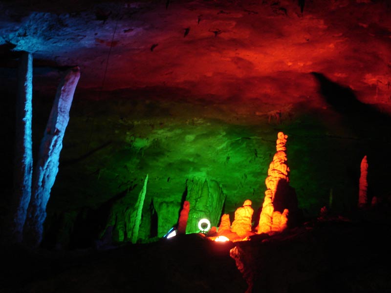 第三絕:九天洞美 九天洞美,美在自然,美在古樸,美在地下溶洞各種自然造型,美在各種色彩,美在世界珍稀。簡言之,九天洞勝狀,主要是洞穴美與色彩美,一句話,是自然美。當(dāng)探洞人王海然第一個在九天洞發(fā)現(xiàn)那些五光十色,造型各異,神奇乖巧的溶洞自然物時,他感到興奮,感到驚訝,感到鼓舞,感到自豪并且被這些美麗的自然物陶醉了,以至于廢寢忘食。當(dāng)你置身九天洞,你可以仔細(xì)欣賞那洞底暗河的流水,那紅色的河床、它們是那樣嘩嘩的流,水聲又是那樣的美。那淡紅、朱紅和鮮紅的河床、河水,有是那樣鋪彩爍金,色彩斑斕,五光十色,真叫人眼花繚亂,目不暇接,越看越神,越看越迷,看的如癡如醉。