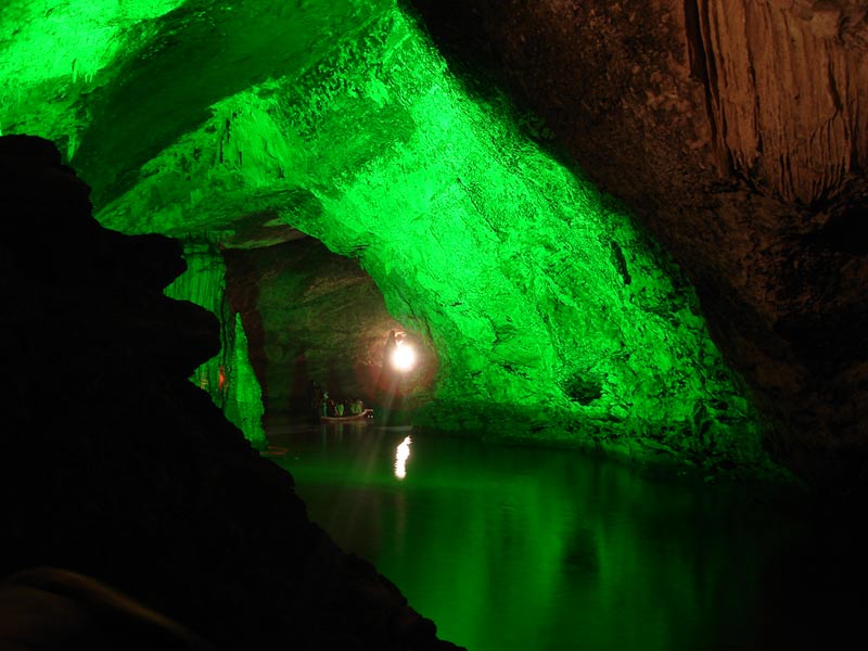 第四絕:九天洞幽 進入九天洞如同到了一個寧靜的世界,在洞內(nèi)讓人有掙脫樊籬,還我自然之感。我們在洞內(nèi)看到的各式各樣的自然造型,它們是那樣古樸,那樣自然,那樣錯落有致,毫無人工雕鑿與粉飾的痕跡。我們在洞內(nèi)聽到的是潺潺的流水聲與飛燕的撲翅聲,當(dāng)然還有蝙蝠、巨鼠的瞿瞿聲。除此外,洞內(nèi)還有許多南來北往的通幽曲徑:有的去舞廳,有的進城門,有的下暗河,有的上天窗。 |