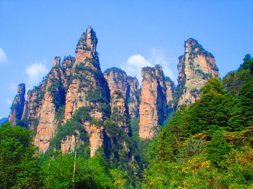下 午:可選擇步行(步行下山一般時(shí)間為2小時(shí)左右)或者乘坐天子山索道(索道票72元/人自行購買)下山,游覽巧奪天工的--【十里畫廊】,可以選擇步行或者乘坐觀光小火車游覽十里畫廊(觀光小火車票單程38元/人自行購買),沿途欣賞天臺(tái)三姐妹峰、向王觀書、黃昏戀、壽星迎賓、采藥老人、錦鼠觀天、猛虎嘯天等景點(diǎn);